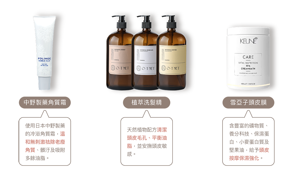 搭配植萃養護系列髮品,依照頭皮狀況選用,從清潔到修護一次到位,
